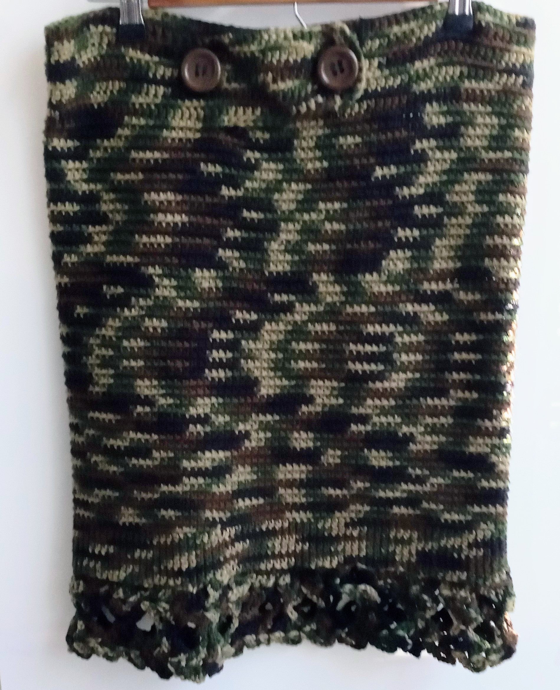 CROCHETED ARMY GREEN PATTERNED NECK and HEMLINE SKIRT SUIT: