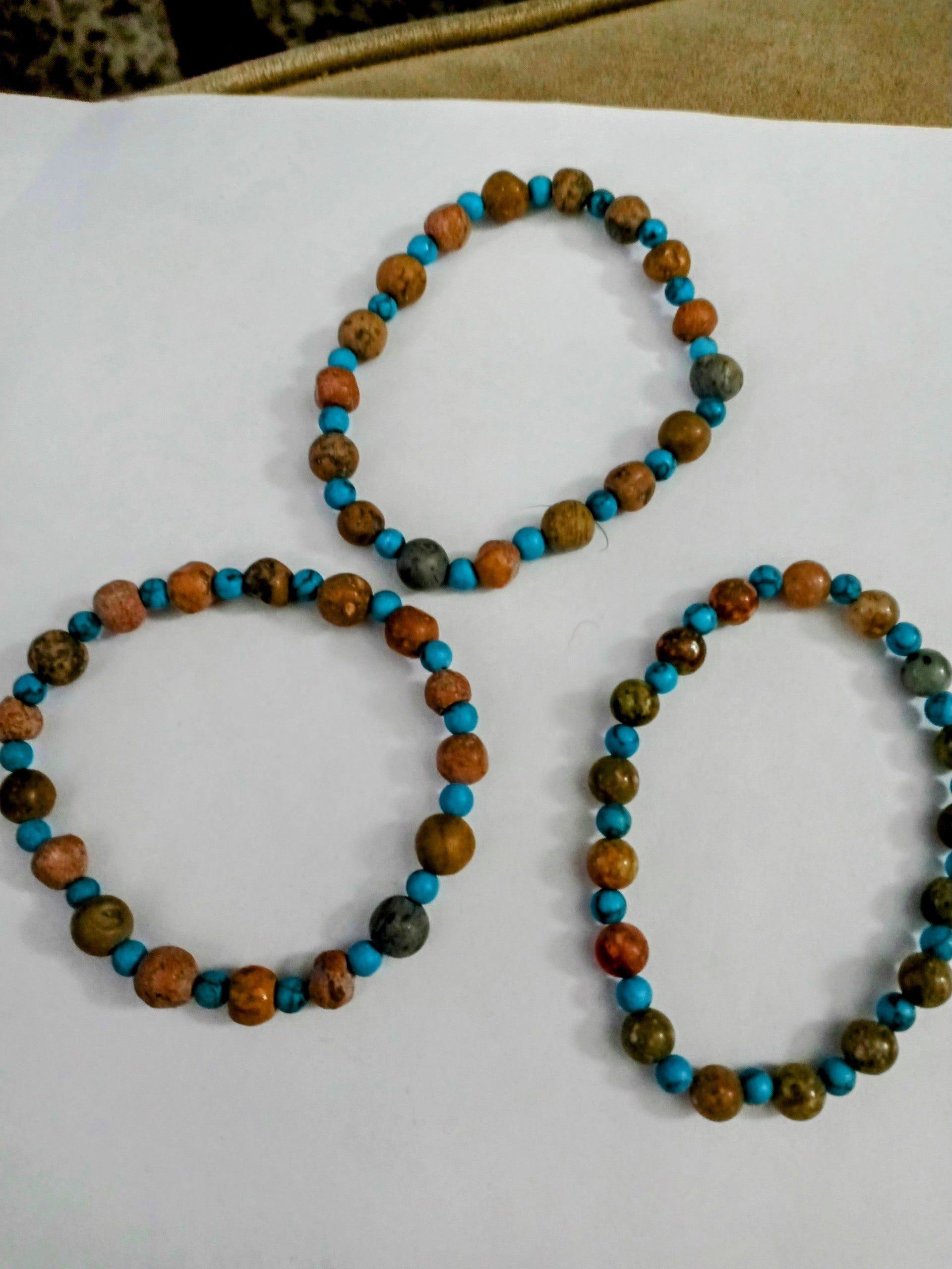 Blue and Brown Beaded Bracelets (Sold as set of 3)