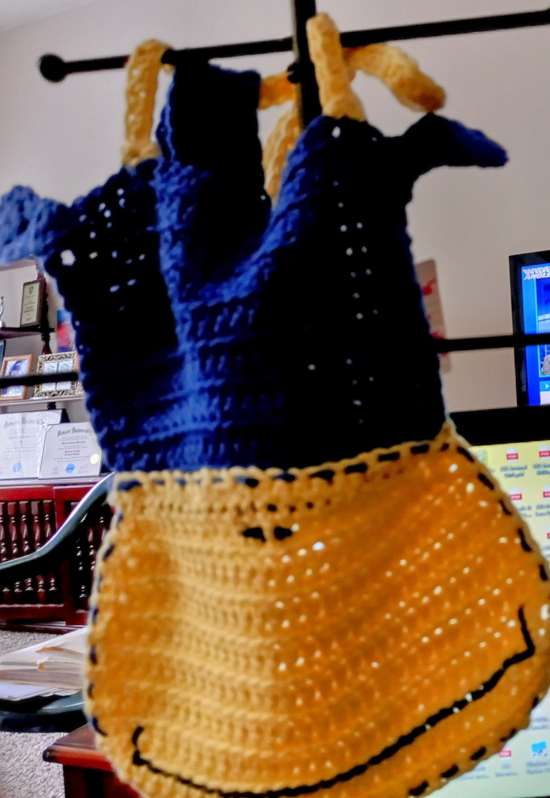 Beautiful crocheted "HIPPO" Baby Bibs multicolored (yellow, blue and black) with matching blue and yellow headbands for your "BUNDLE OF JOY" or as an IDEAL Shower Gift .(Sold individually or as a set) ($9 and $$9.50).