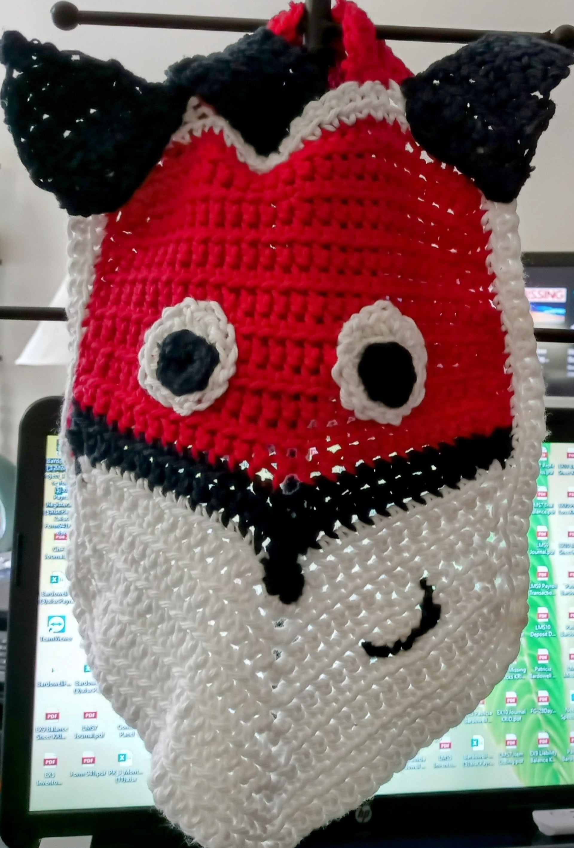 Beautiful crocheted multicolored "FOX" Baby Bib (Red, white and black) for your "BUNDLE OF JOY" or as an IDEAL Baby Shower Gift.