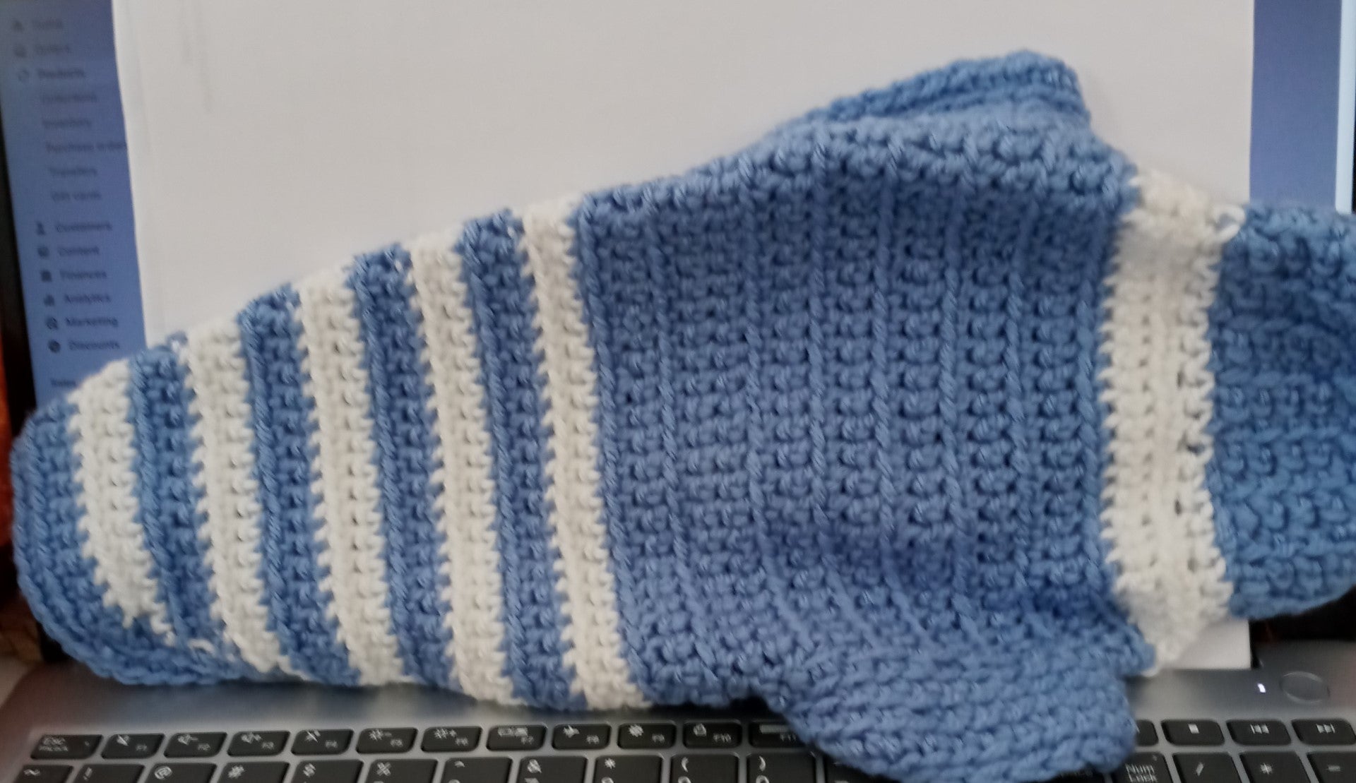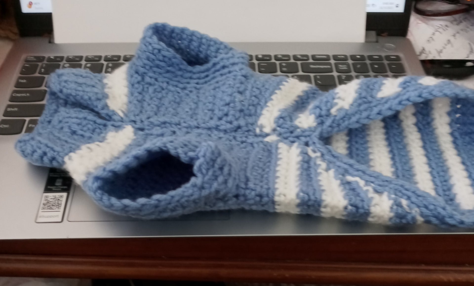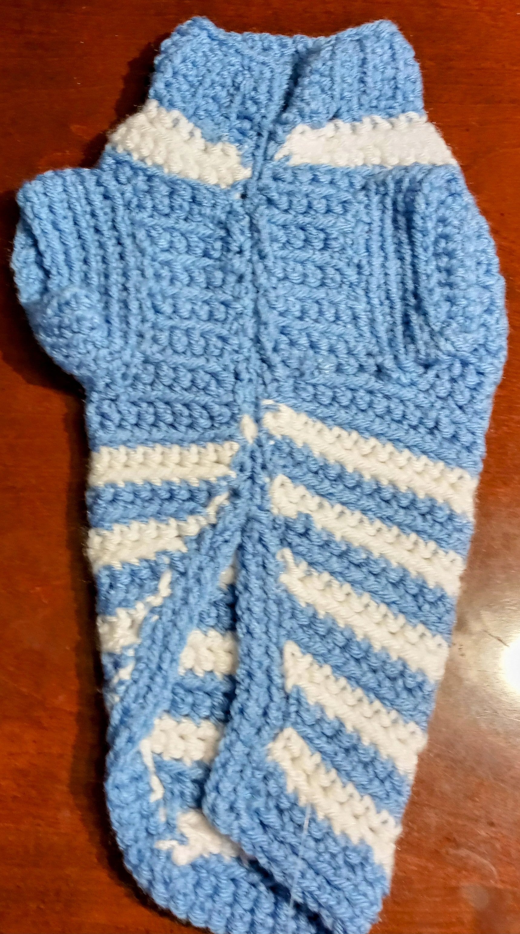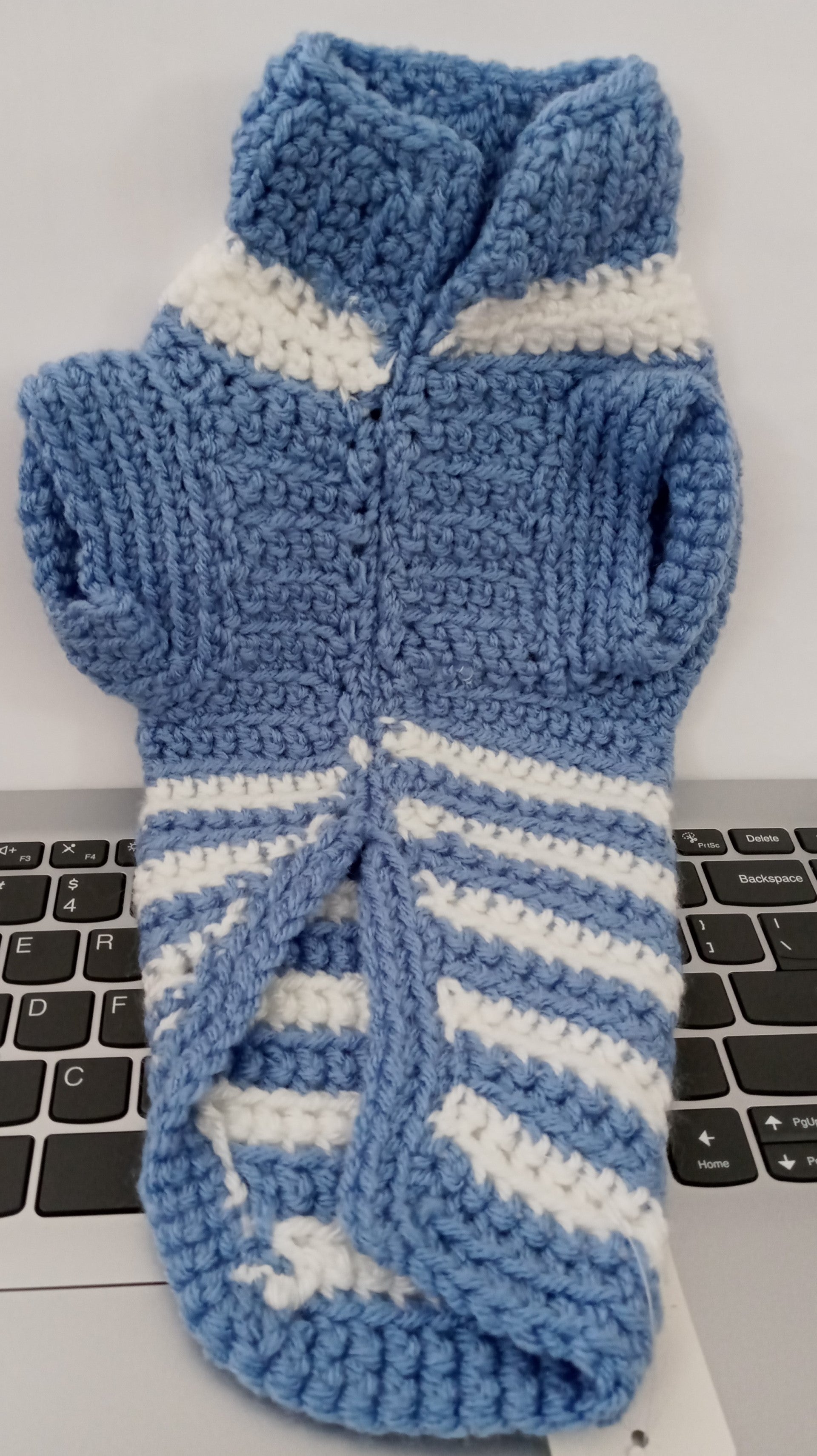 Blue and White Striped and Plain Dog Jacket for Small Puppy (6lbs)