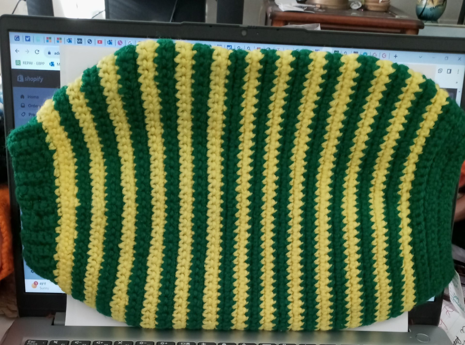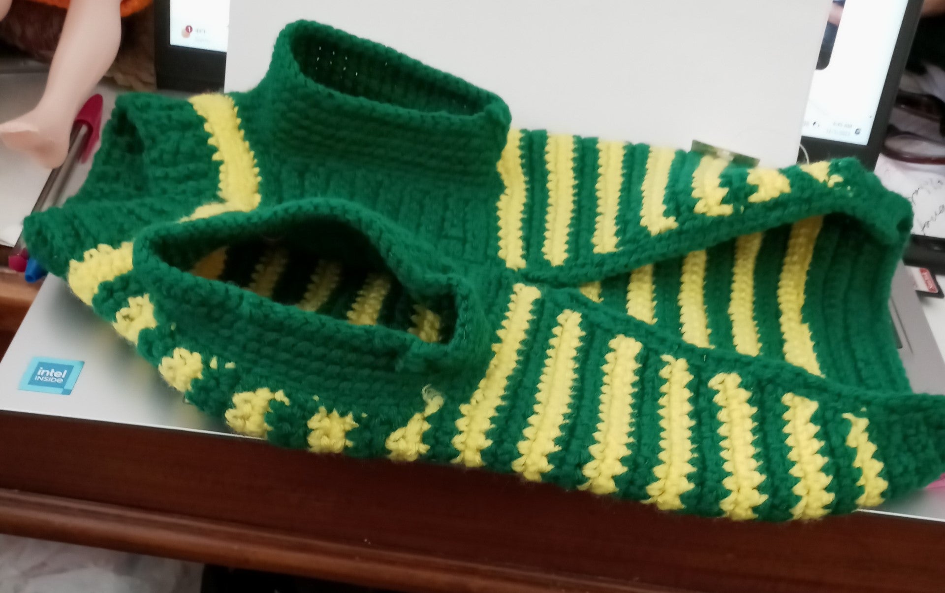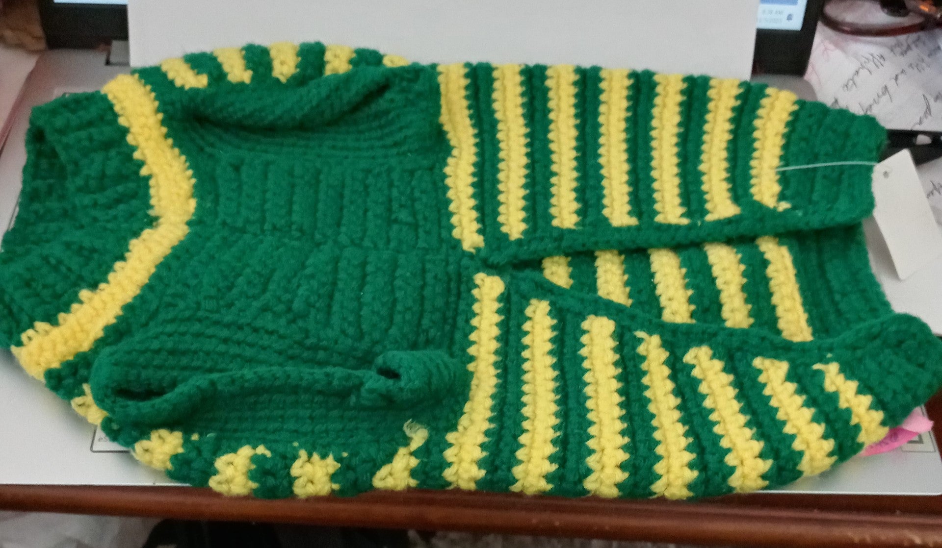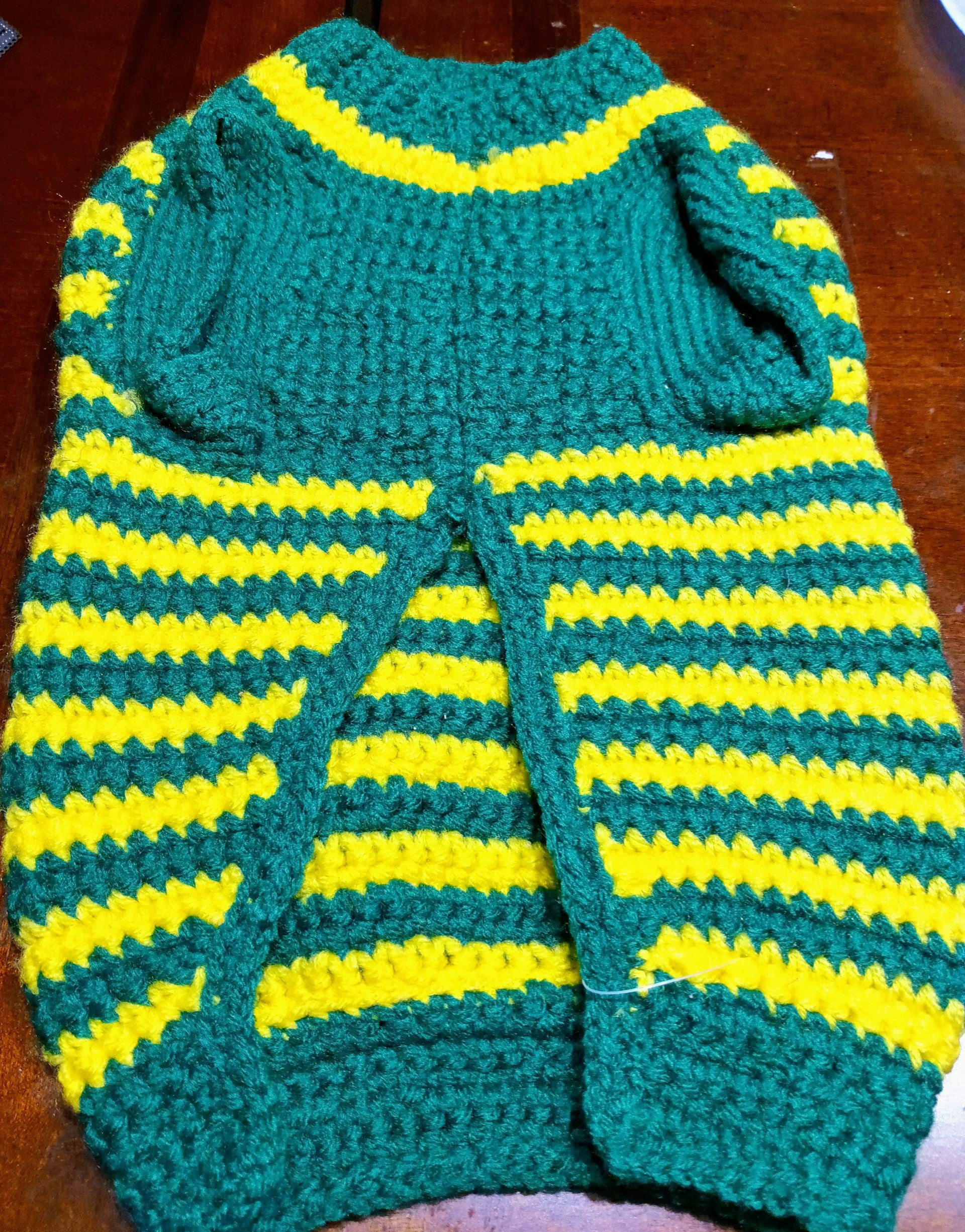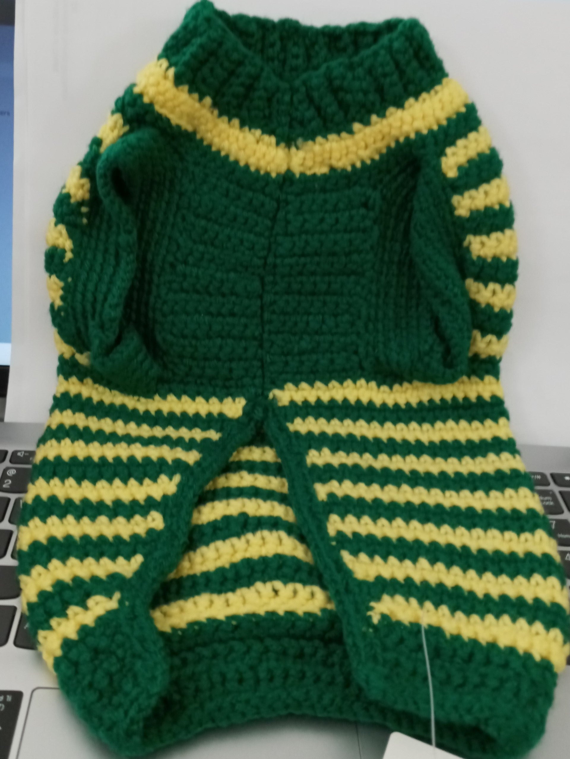 Crocheted Multicolored (green and yellow) Dog Jacket