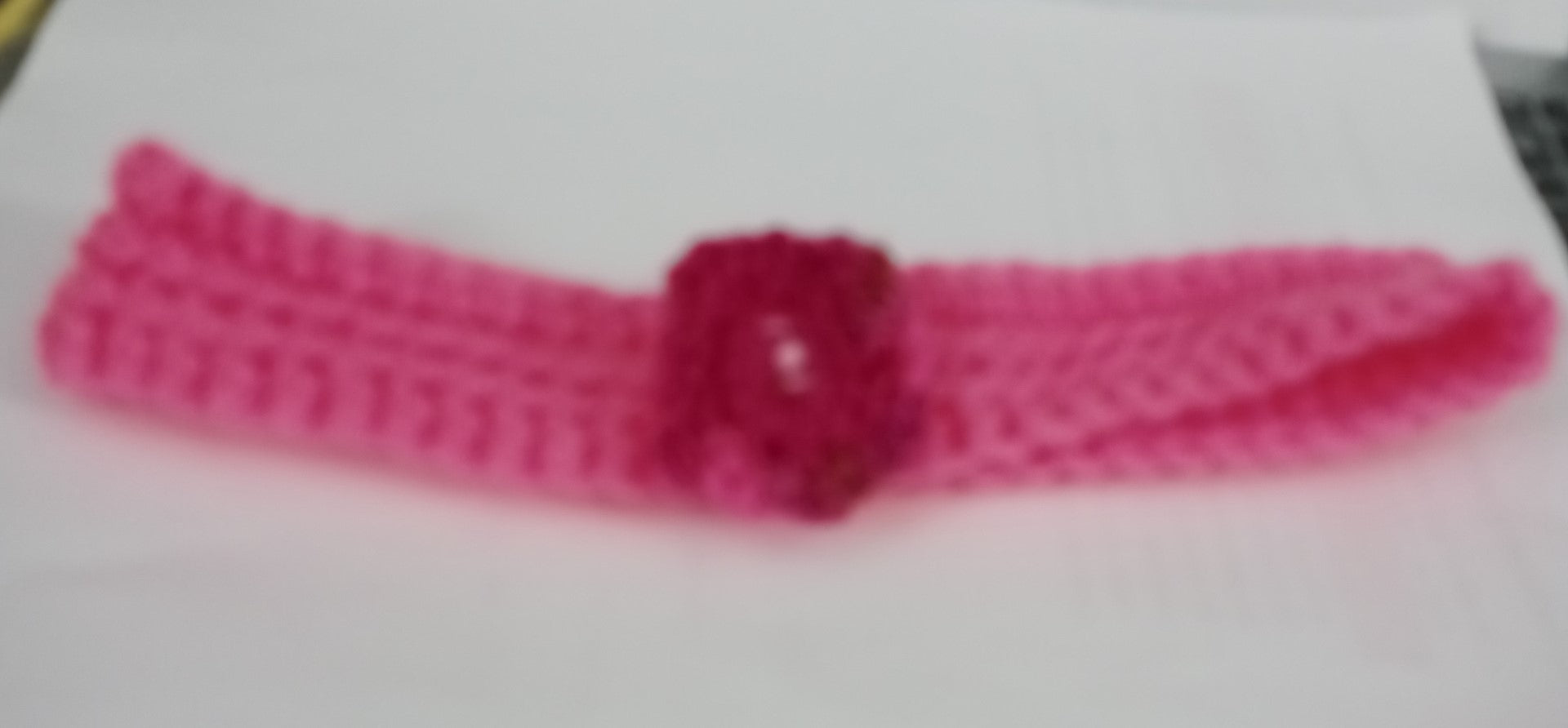 Crocheted bright pink headband adorned with "Baby Pink " rosette. for your TODDLER or that BIRTHDAY GIFT.