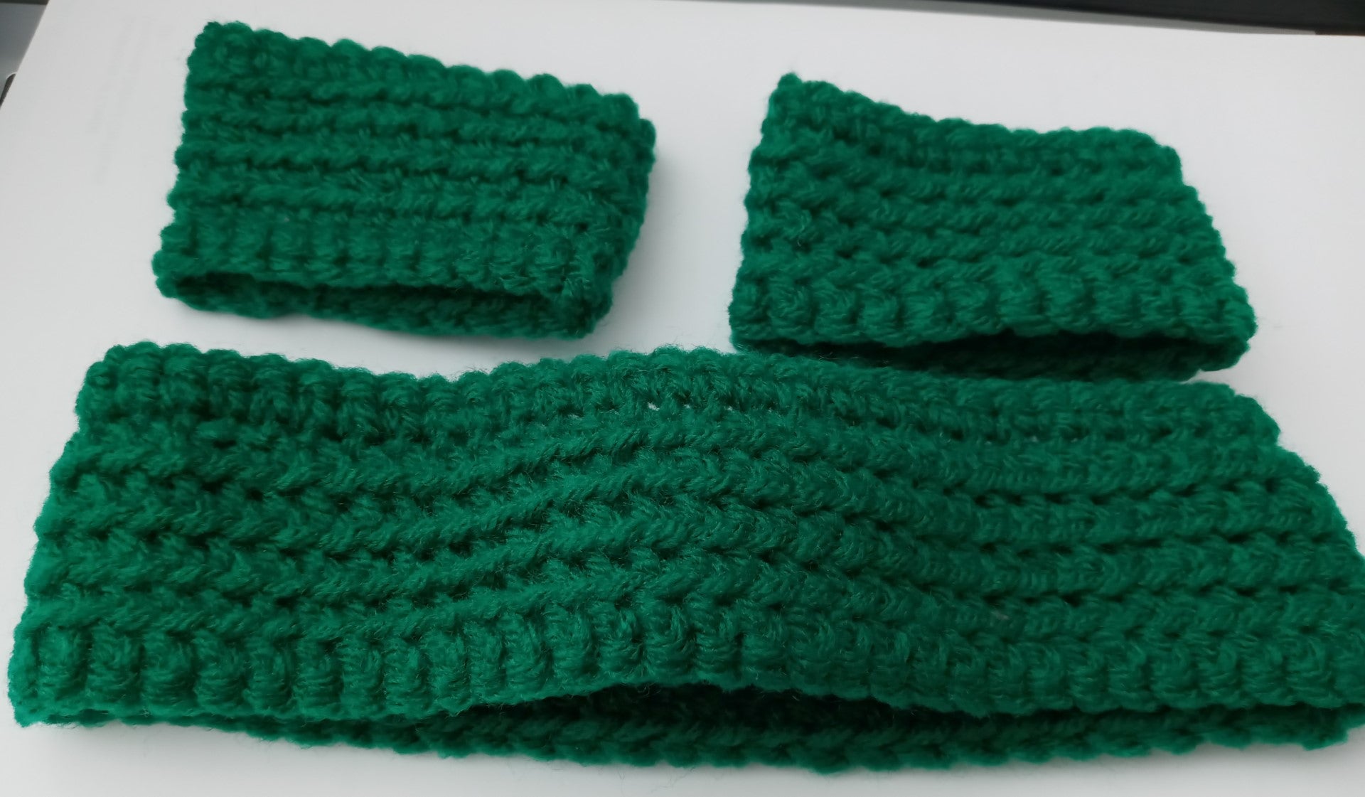 Crocheted green Headband and two (2) matching Wristbands for the exercise enthusiast and useful for other physical activities.