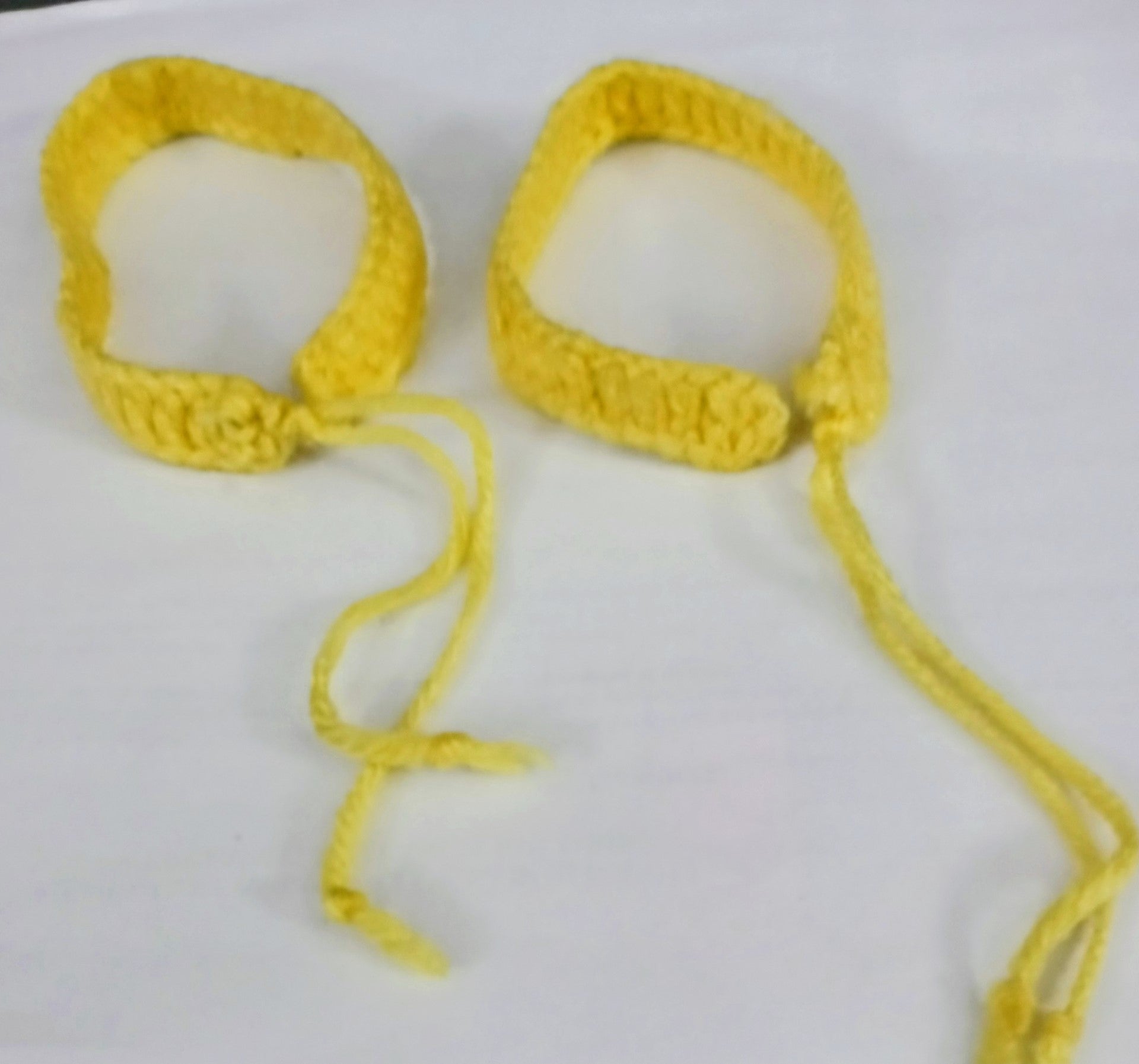 Two (2) yellow crocheted Bracelets with tie string to fasten..