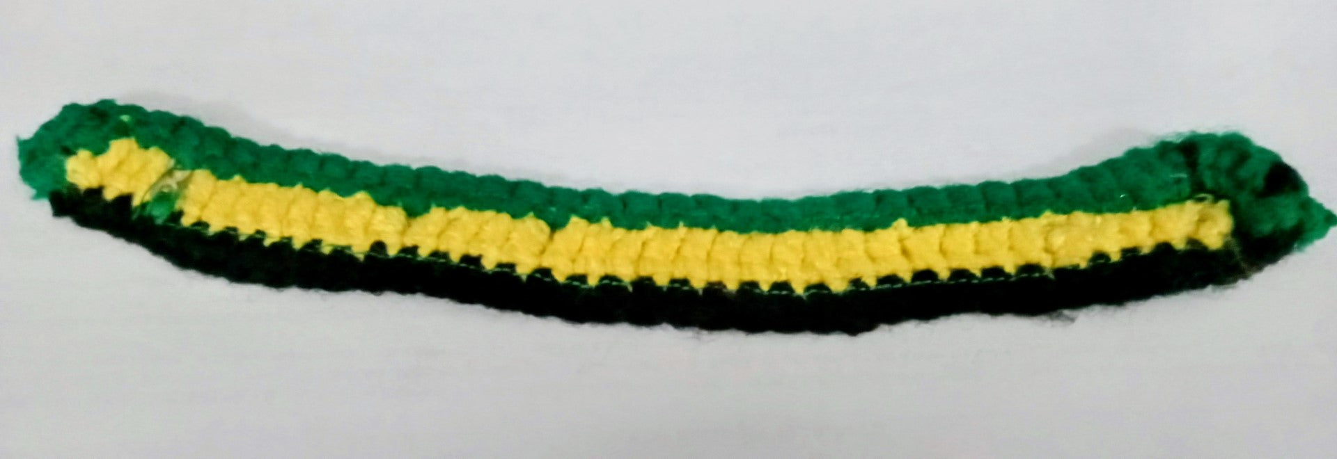 Black, green and yellow crocheted Bracelet with latch to fasten..