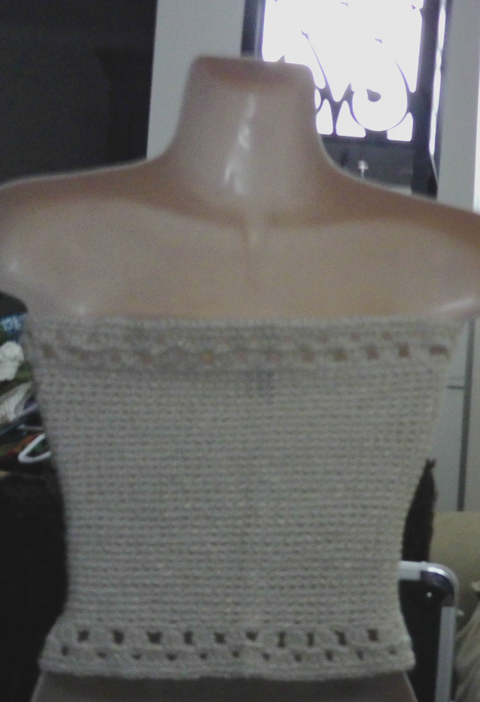 Crocheted ivory with gold streaks Tube Top with patterned hemline and neckline.